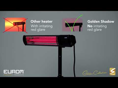 De Eurom Golden 2000 Shadow is een elektrische terrasverwarmer met een vermogen van 2000 watt. Deze heater geeft een aangename warmte zonder sterke rode gloed en heeft een verwarmingsbereik van zo’n 20 vierkante meter. Met deze terrasheater zit je er dan ook lekker warmpjes bij wanneer het ‘s avonds wat afkoelt.