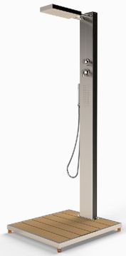 Wil jij super-de-luxe douchen in de buitenlucht? De IDEAL Helena buitendouche is uitgerust met hoofd- én rugstralen voor het ultieme wellness gevoel! De grote bodemplaat zorgt ervoor dat je voeten netjes schoon blijven en je geen last hebt van zand of gras. Ook is er een losse handdouche waarmee je jezelf gemakkelijk af kunt spoelen of bijvoorbeeld de hond schoonmaakt na zijn modderbad in het bos. Dankzij de twee aansluitingen van ½ inch is het mogelijk om warm en koud te douchen. Met de mengkraan bepaal je in een handomdraai de perfecte watertemperatuur.