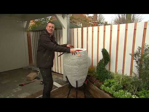 De regenton zet je naast de regenpijp. Het tussenstuk wat je naar je regenpijp moet verwerken zit al aan de regenton bevestigd. Hert enige wat jij hoeft te doen is een overloopset bevestigen tussen je regenpijp en regenton. A piece of cake, eeh… pijp. Bij de regenton zit een aansluitset inbegrepen om de ton met de regenpijp te verbinden.