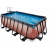 Dit rechthoekige EXIT Wood opzetzwembad heeft een hele mooie houtlook. Maar dat is niet het enige. Wat dit zwembad uniek maakt is de overkapping. Zo zwem je altijd bij weer en wind! Met een afmeting van 400 bij 200 cm en een hoogte van 122 cm is het zwembad geschikt voor ongeveer 6 tieners. Door de uitstekende poten neemt dit zwembad iets meer ruimte van je tuin in beslag, namelijk 460 bij 253 cm. Hierdoor is het zwembad wel lekker stevig! Het zwembad heeft een sterke drie laags liner, wat altijd zorgt voor een goede stabiliteit!