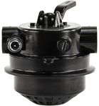 Een 6-weg klep zit bevestigd op het filtervat. Hiermee bedien je als het ware het filtersysteem. De 6-weg klep bevat een hendel waarmee je het filtersysteem op verschillende standen kunt zetten.
