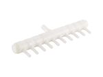 Kunststof luchtverdeler met 10 uitgangen. Inlaat: 9mm, uitgangen: 4mm.
