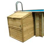 Deze filterkast is een houten kast (gemaakt van geïmpregneerd dennen hout) die alle technische onderdelen in de buurt van het zwembad overdekt. Zorg uiteraard voor de juiste afzekeringen (30mA) in de technische kast. De technische kast is gemaakt voor de Octo en Octo+ modellen en dient alleen in combinatie met deze zwembaden gebruikt te worden.