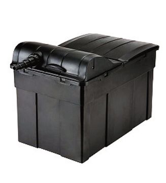 Dit meerkamerfilter is niet voor niks één van de meest gebruikte vijverfilters. Het heeft een grote filtercapaciteit voor een doeltreffende filtering. Door het filter op een pomp aan te sluiten wordt gebruik gemaakt van het doorstroomprincipe. Het filterschuim zorgt voor een mechanische filtering waarbij het grove vuil uit het water gefilterd wordt. Daarna wordt het water geleid langs filtermedia, waarop micro-organismen zich hechten. In deze fase wordt het vijverwater ook biologisch gefilterd, schadelijke stoffen zoals ammoniak en nitriet worden in deze fase omgezet.