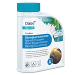Hoge temperaturen in combinatie met intensieve afbraakprocessen of algengroei leiden in de tuinvijver snel tot zuurstofgebrek. Vooral in de vroege ochtenduren kan dit de vijverbewoners in gevaar brengen. Vissen die meer dan anders vlak onder het wateroppervlak zijn om naar lucht te happen, zijn een indicatie. OxyPlus verhoogt het zuurstofgehalte snel en zonder gedoe. En dankzij de depotwerking meteen voor meerdere dagen. Dat komt ook de biologische zelfreinigende kracht van het water ten goede. De garantie voor kristalhelder en gezond vijverwater. OxyPlus is de ideale aanvulling op behandeling van slib of algen.