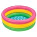 Intex Sunset Glow Baby Pool 86 x 25 cm is een standaard baby zwembad. Het bad heeft een ronde vorm en diverse regenboogkleuren. Zo bestaat het bad uit een roze, een gele en een groene ring. Daarnaast heeft het bad een extra zachte opblaasbare vloer.